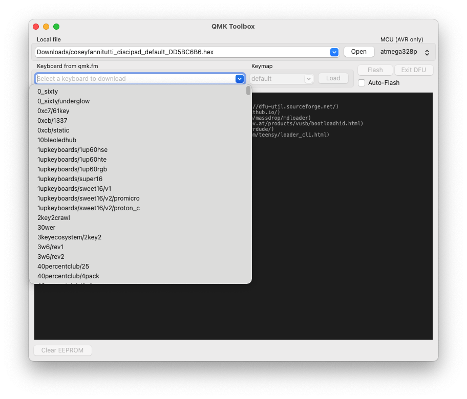 - 부트로더 모드 진입이 완료되면 avrdude 또는 QMK Toolbox를 사용하여 키보드 펌웨어를 업로드 한다.