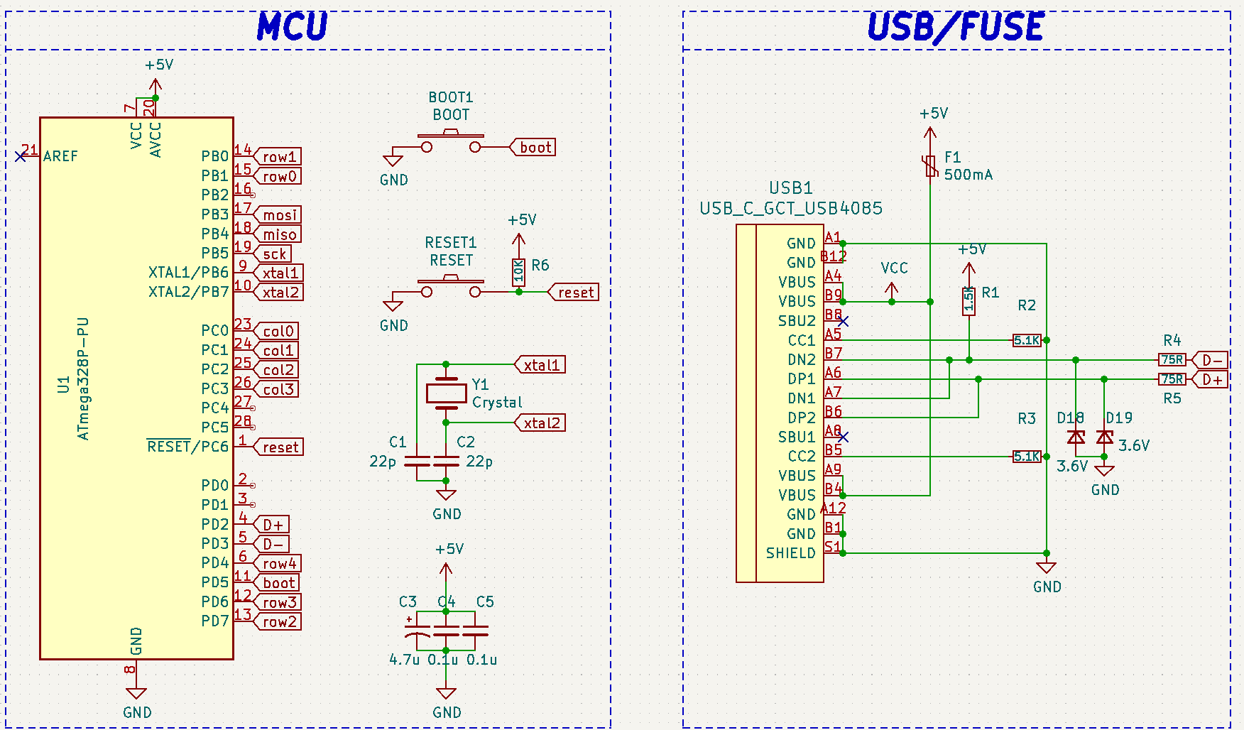 - [USB D+] --> 75 Ohm 저항 --> Atmega 4번 핀에 연결