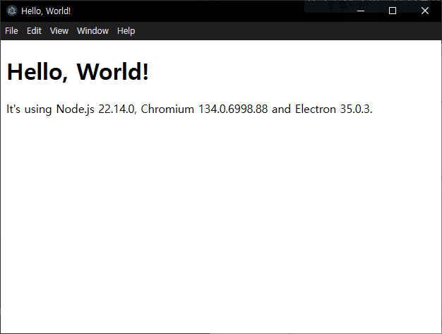 의도한대로 Cromium, Node.js, Eletron 버전이 표시됩니다.
