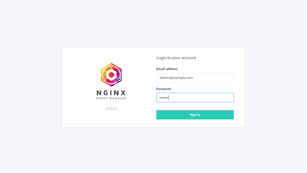 Nginx Proxy Manager에 접속해서 초기 계정과 비밀번호를 입력한 뒤 로그인 한다.